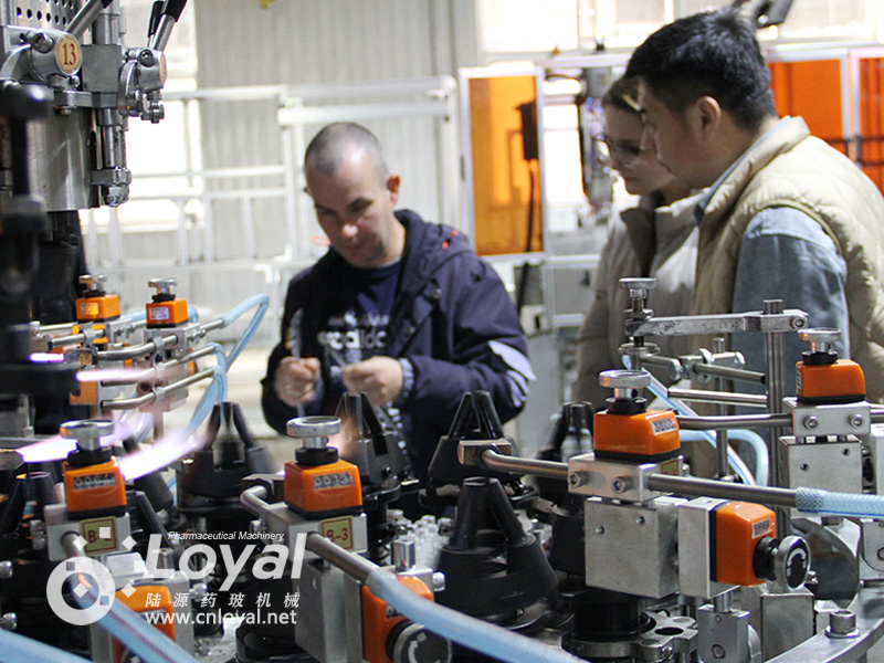 西林瓶生產(chǎn)線包括:自動上管、自動成型、經(jīng)機械手轉(zhuǎn)換至前端檢測線(也叫生產(chǎn)管控)、檢測線檢測的項目:1、瓶口內(nèi)外徑 2、瓶身長短 3、瓶身外徑 4、瓶口邊厚 5、瓶底內(nèi)凹尺寸檢測;經(jīng)檢測后的合格品再用機械手夾盤轉(zhuǎn)換至退火爐網(wǎng)帶上,經(jīng)高溫減除應力后再降溫,通過氣動吸盤將回火后的小瓶轉(zhuǎn)換至后端檢測線,后端檢測(也是重檢也叫終檢),經(jīng)后端拍照檢測項目